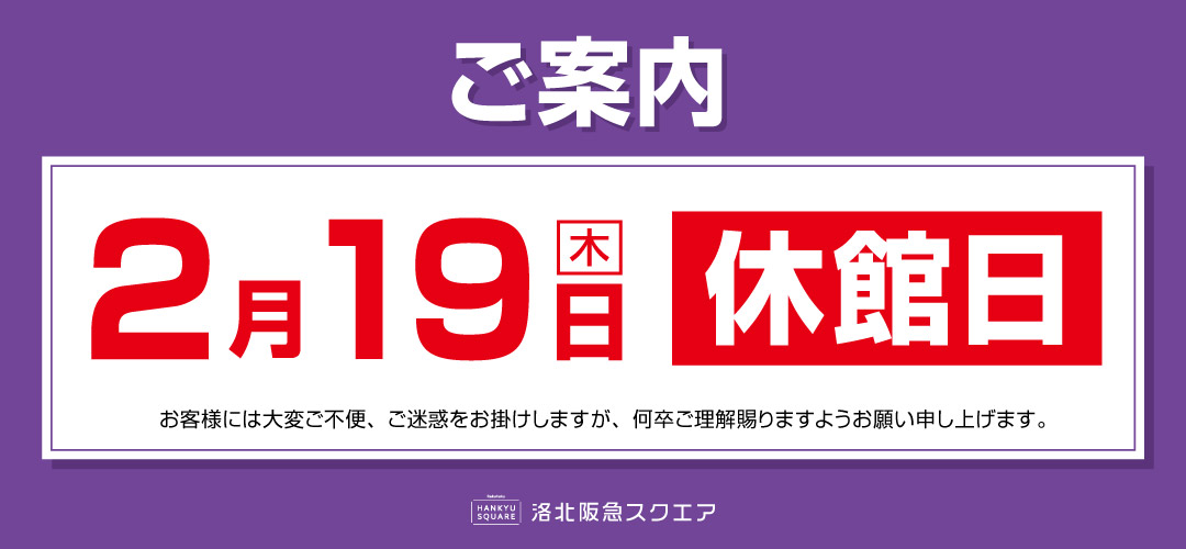 2月19日(木)休館日のご案内