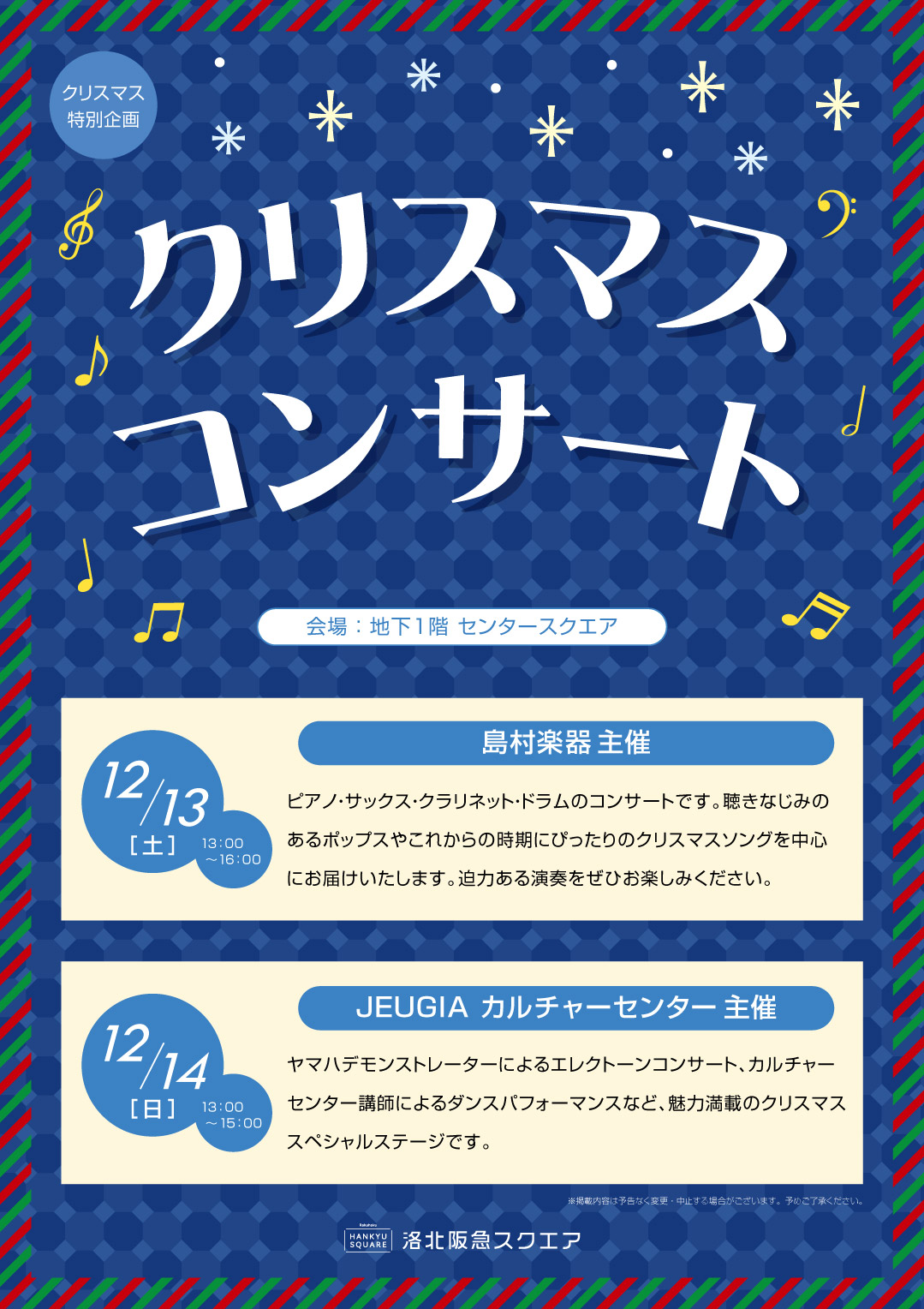 ヤマハデモンストレーターによるエレクトーンコンサート、カルチャーセンター講師によるダンスパフォーマンスなど、魅力満載のクリスマススペシャルステージです。
