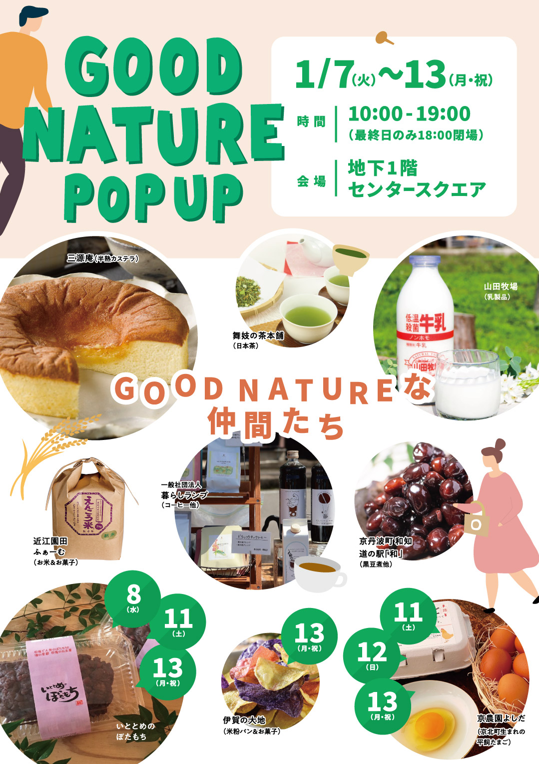 『グッドネイチャーステーション』 2025.01.07~2025.01.13 『グッドネイチャーステーション』 期間:2025/1/7(火)~1/13(月) 時間:10:00~19:00(※最終日のみ18:00まで) 会場:地下1階 センタースクエア 「信じられるものを、美味しく、楽しく。」 四条河原町の「GOOD NATURE STATION」がおすすめの果物や商品を揃えPOPUPを開催します。ワクワクが楽しめるGOOD NATUREなモノ・コト体験をお楽しみください。 SNSでシェアする Tweet Tweet 一覧へ戻る