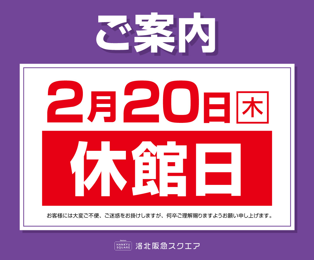 『2月20日(木) 休館日のご案内』 2025.02.20 2025年2月20日(木)は休館日とさせていただきます。 お客様には大変ご不便、ご迷惑をお掛けしますが、何卒ご理解賜りますようお願い申し上げます。 SNSでシェアする Tweet Tweet 一覧へ戻る