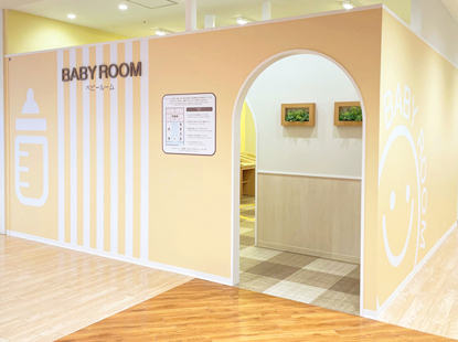 2Fスクエアダイニング近くにあるベビールームは、授乳室(最大4名)・おむつ替え用ベビーベット(4台)・ソファスペース・ミルク用給湯器・おむつ専用ゴミ箱等を兼ね備えています。