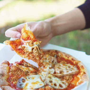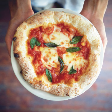 400℃の石窯で香ばしく焼き上げるピッツァは、有名ベーカリーと共同開発した特製生地を使用。外はパリッと香ばしく、中はふんわりもちもちの絶妙な食感が広がります。ぜひご堪能ください。