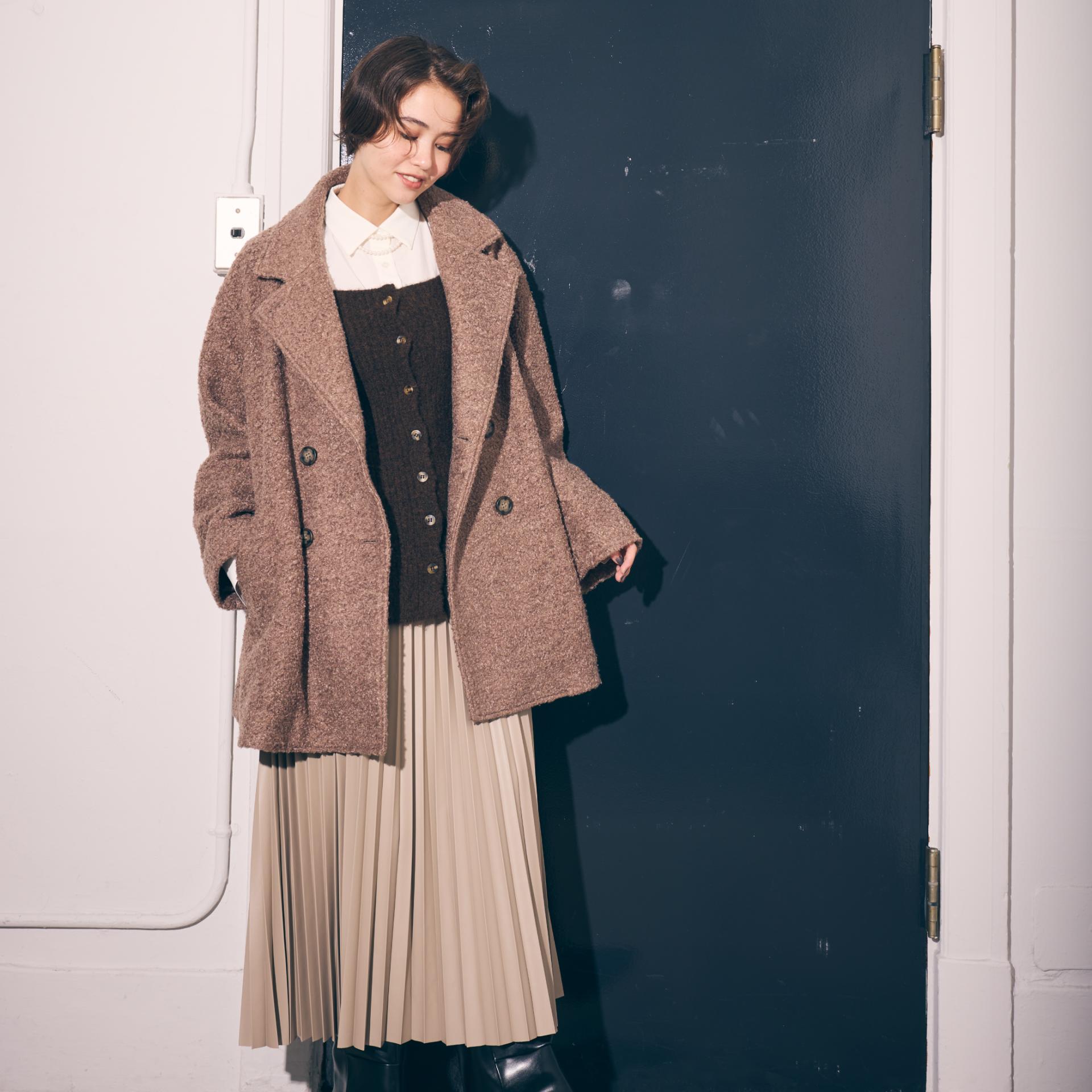襟元を開いてPコート風の2通りのスタイルが楽しめるコートです。