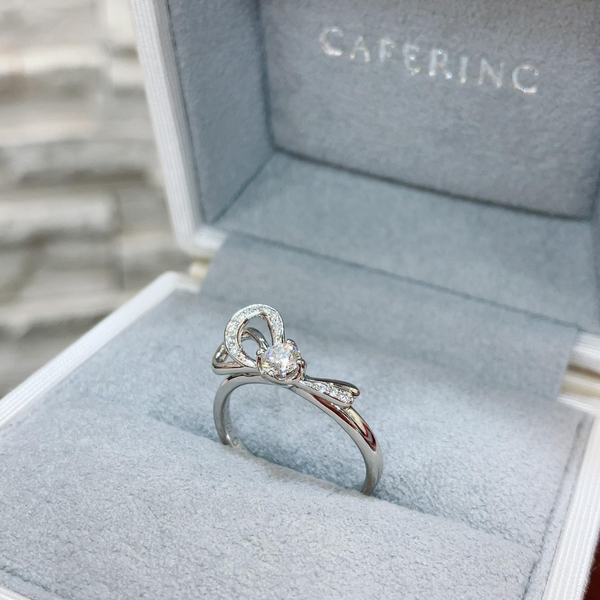 薬指にリボンが巻かれたような可愛らしいデザイン。