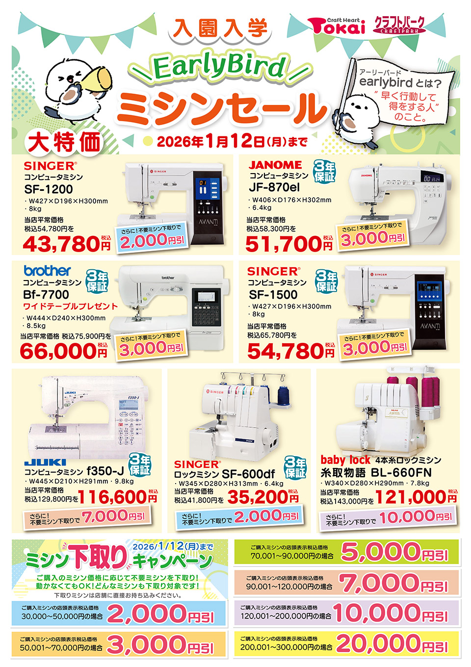 セール期間中、不要ミシン持込でお得に買い替え!