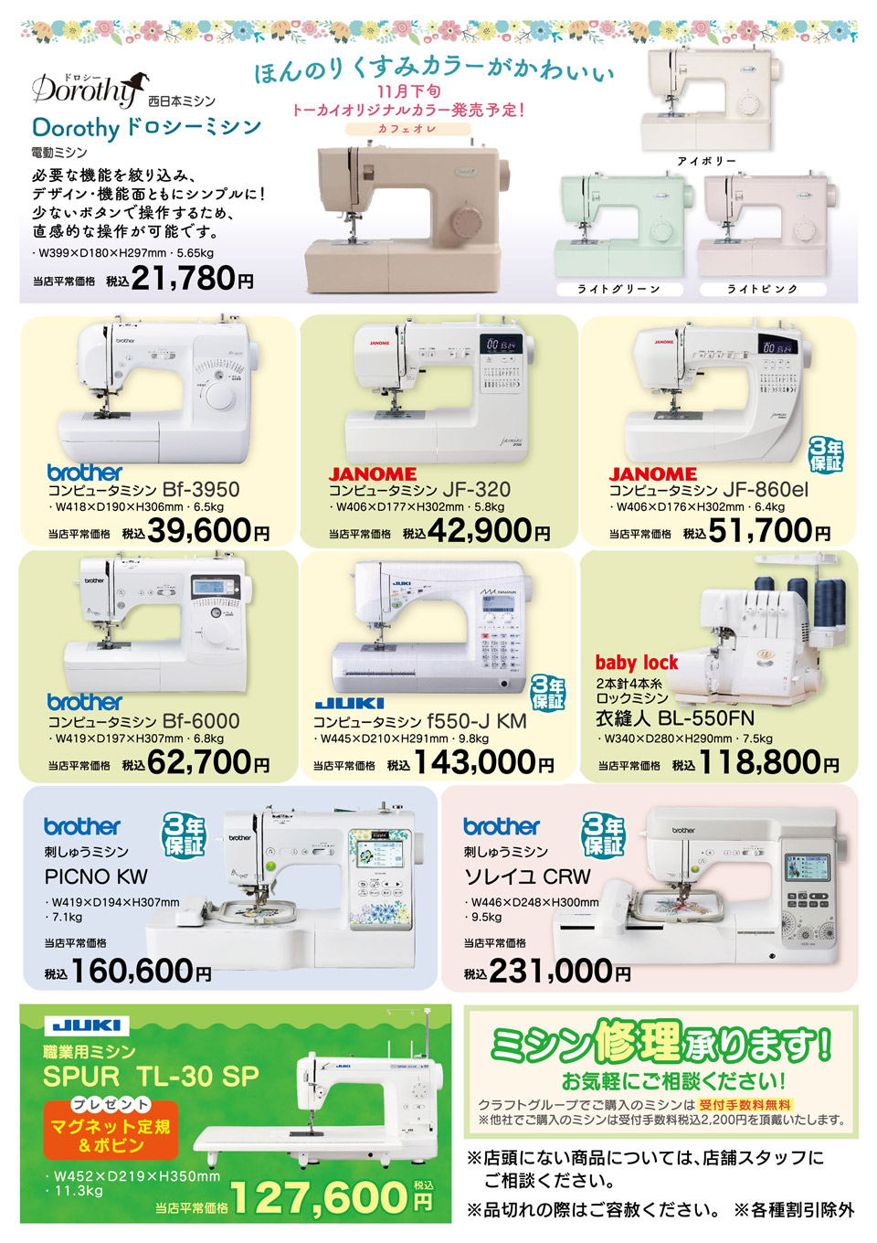 ※下取りしたミシンは返却できません。
