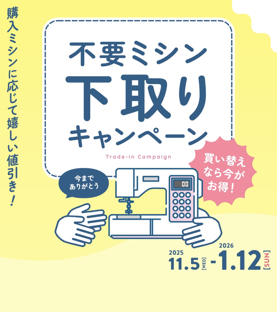 ミシンの下取り値引きキャンペーンを実施中です。