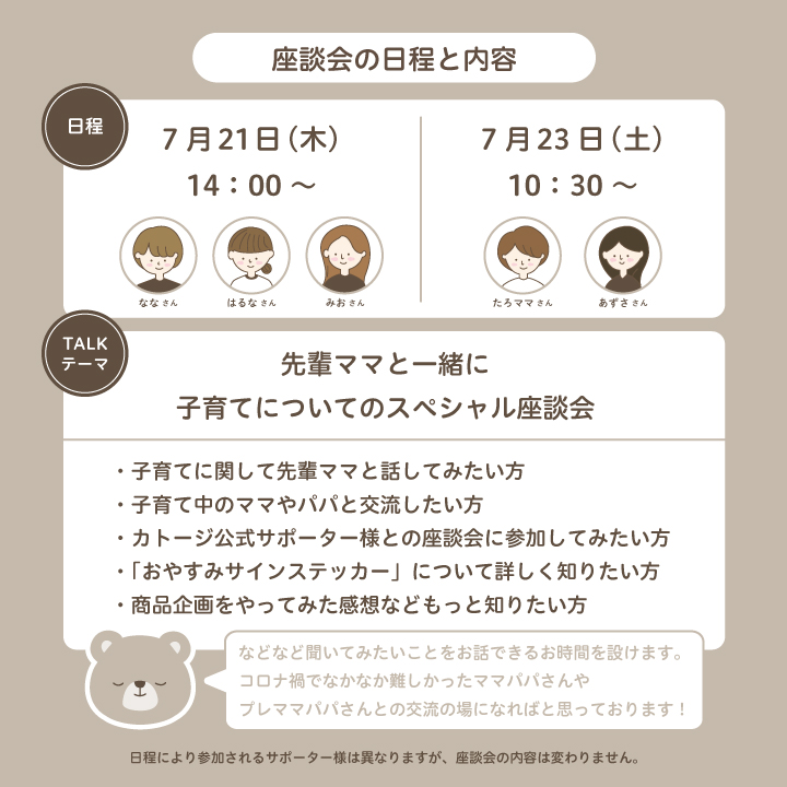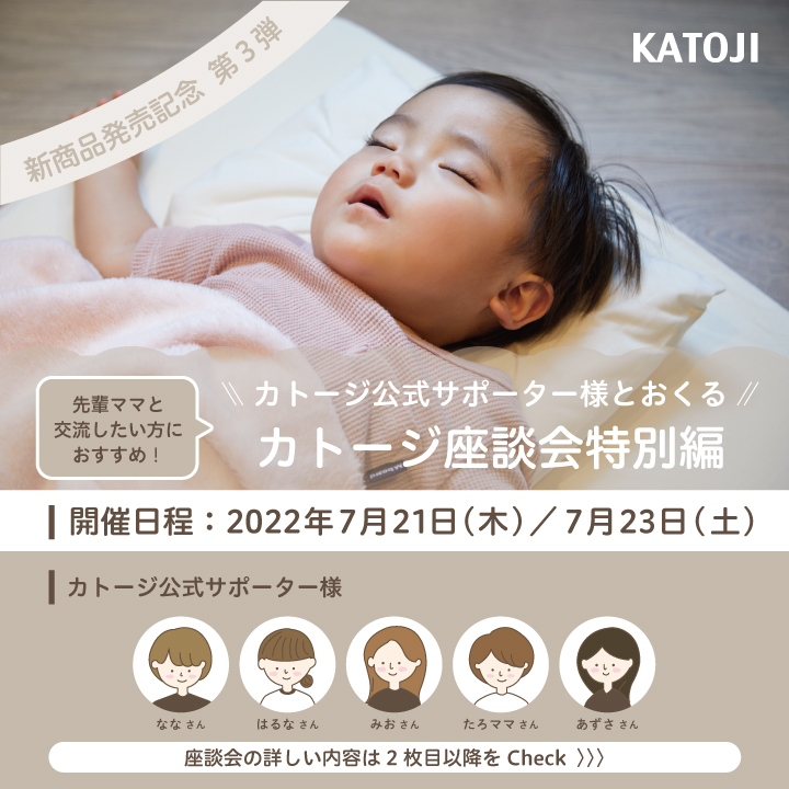 7/21(木)・7/23(土)にKATOJIスペシャル座談会を開催! 先輩ママさんと交流してみませんか? ご応募期間は7/1~7/11までで 各日10名様までとなります! 詳しくは京都店ブログにて!