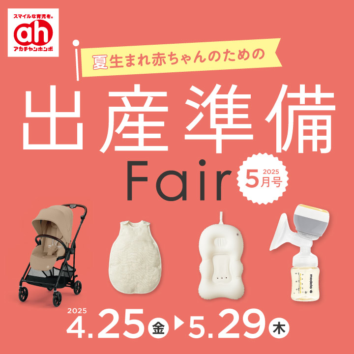 授乳やおふろ、ねんね、おでかけなど、赤ちゃんをお迎えする準備用品に特化した出産準備フェアを開催! 沐浴には何がいる? ミルクの準備は? ねんねの時には何を着せよう? 赤ちゃんとの生活に必要なものを、シーン別にご紹介しています。 授乳口付きの半袖Tシャツやピジョンのバウンサーなど、期間限定のスペシャルプライス商品のご案内も要チェック♪
