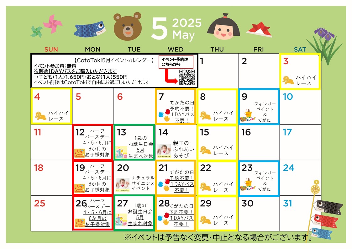 ママパパのための子どもと安心して過ごす場所 CotoToki CotoTokiでは定期的にママ・パパ・お子様が楽しめるイベントを開催しております。 CotoTokiで素敵な思い出を作りませんか? イベント予約はアカチャンホンポアプリからお願いします♪ 詳しくはアカチャンホンポHPをご確認ください。 アカチャンホンポHP