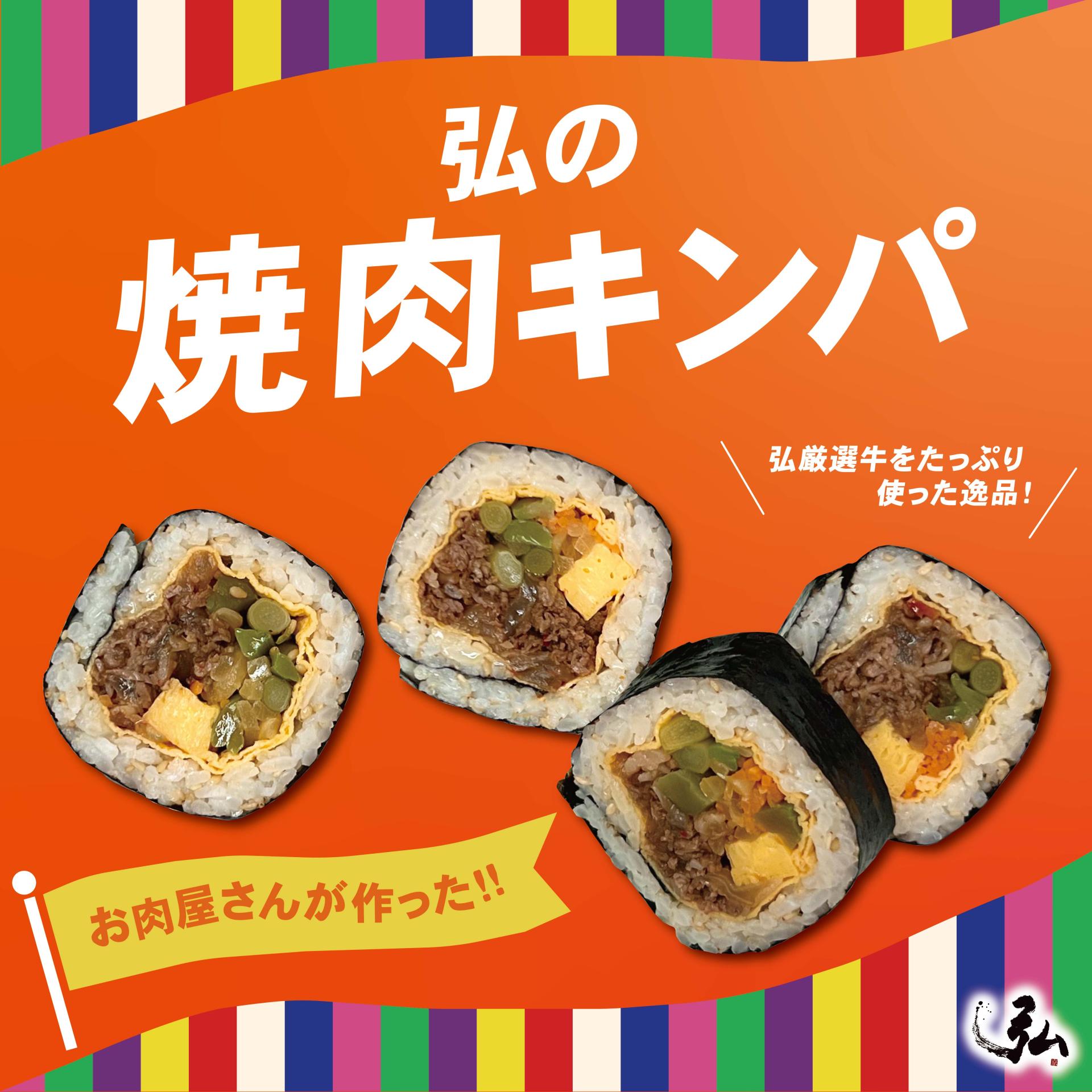 "弘の焼肉キンパ” 好評発売中! お肉屋さんが作るこだわりつまった逸品! パクッと食べるととまらない美味しさ! …1パック 780円(税込)