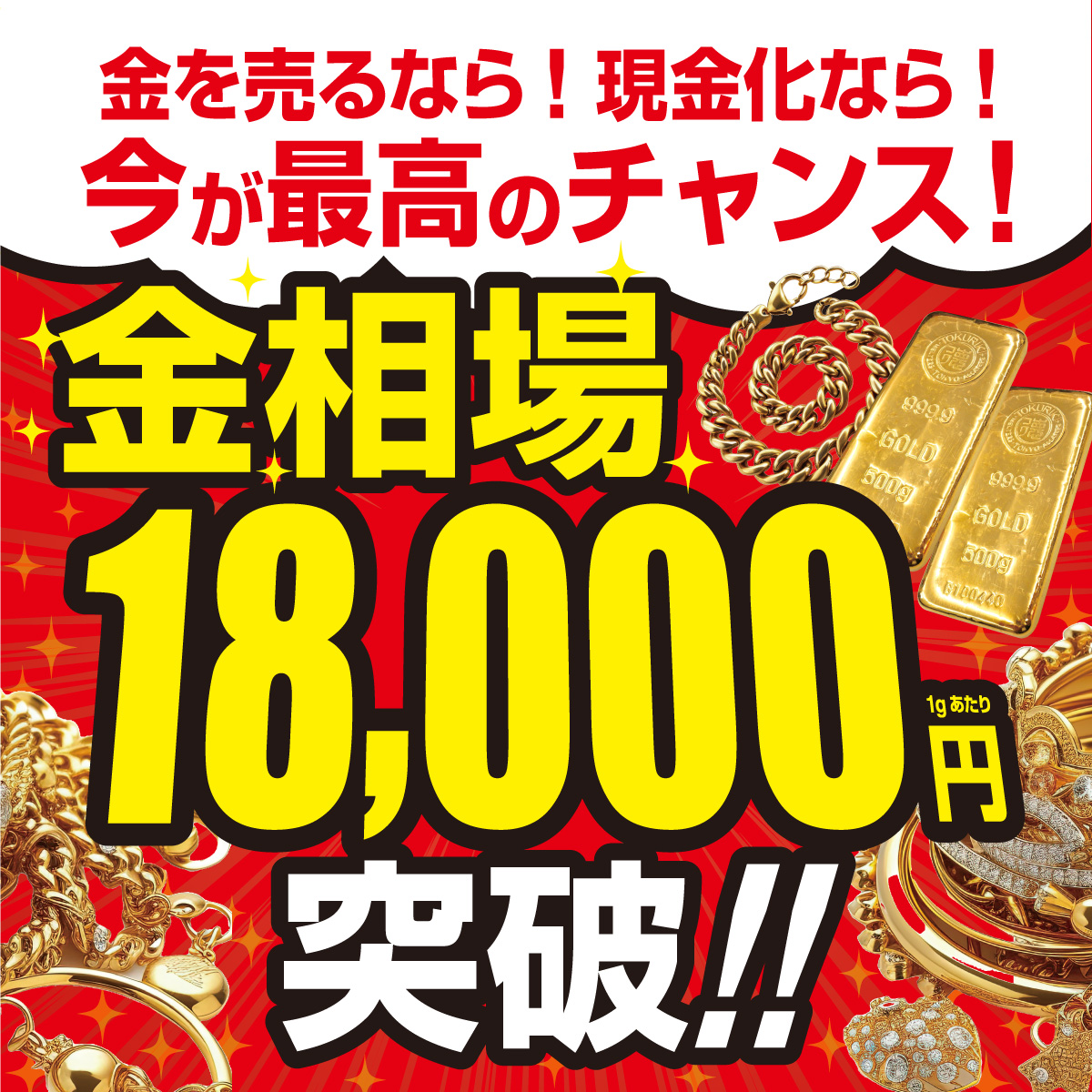 ご覧いただきありがとうございます。 金相場18000円突破いたしました! 金を売るなら今がチャンスです♪ インゴットやコイン、その他 壊れてしまったジュエリーでも大丈夫です! ぜひお気軽にお問い合わせください。