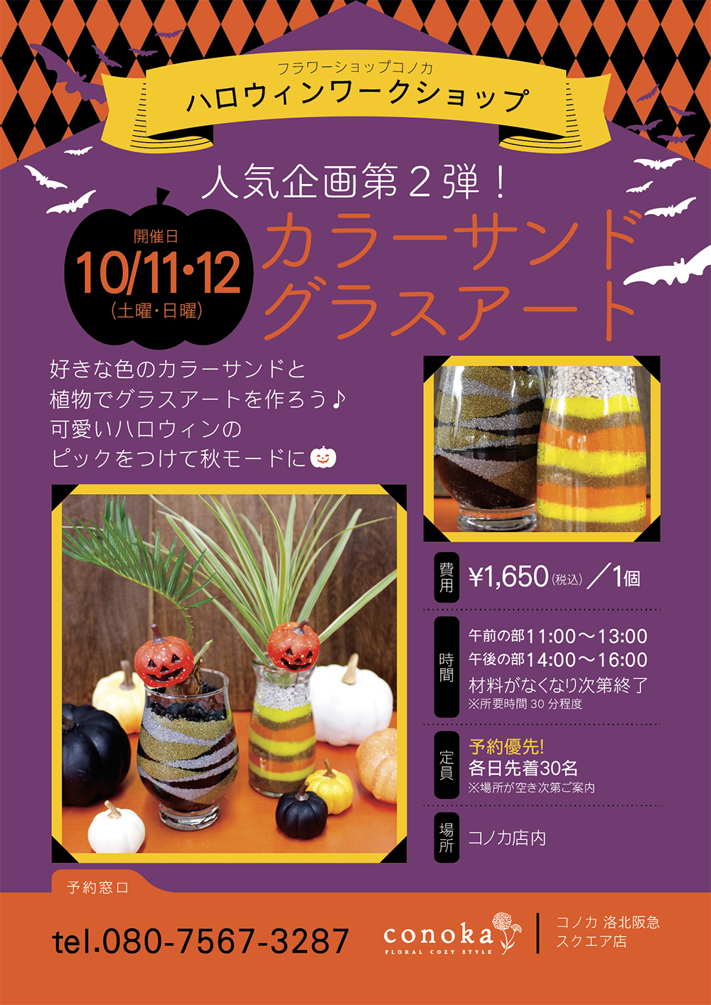 フラワーショップコノカ ハロウィンワークショップ ~カラーサンドグラスアート~