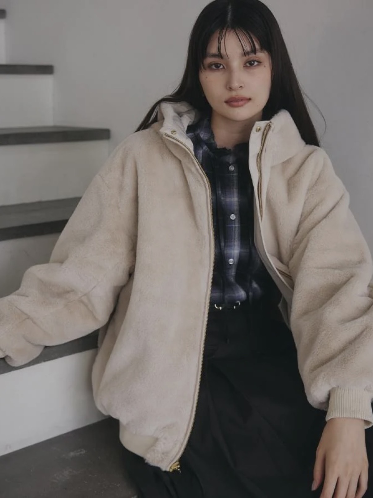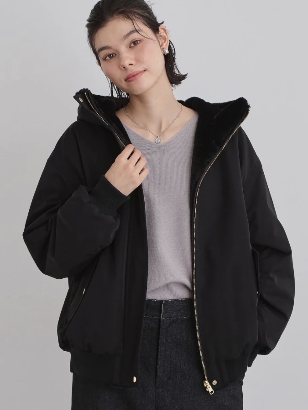 MA-1風のリブブルゾンとフェイクファーがリバーシブルになったブルゾンは、1着で2通りのスタイルを楽しめる注目のアイテムです。