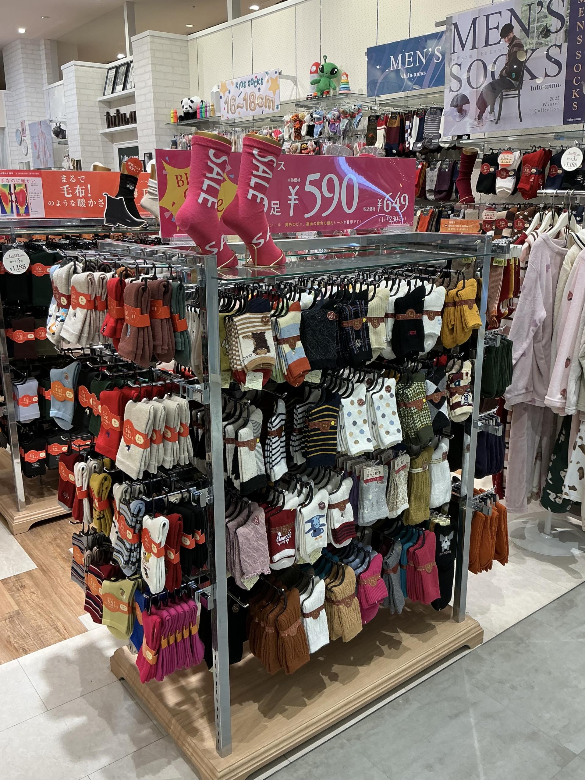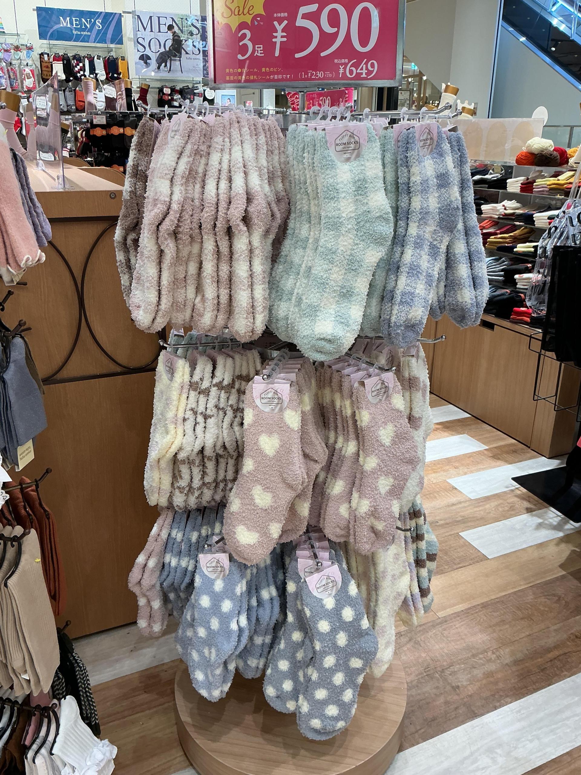 皆さんこんにちは♪ いつも当店をご来店下さいましてありがとうございます! 去年冬大好評だった特価ソックス3足税込¥649が今年も始まりました!! カシミヤや足楽ソックス、他にもモールソックスなどたくさんご用意してお待ちいたしております! 数に限りがございますので、お早めにご来店下さいませ♪♪♪ 皆様のご来店、心よりお待ちしております☆