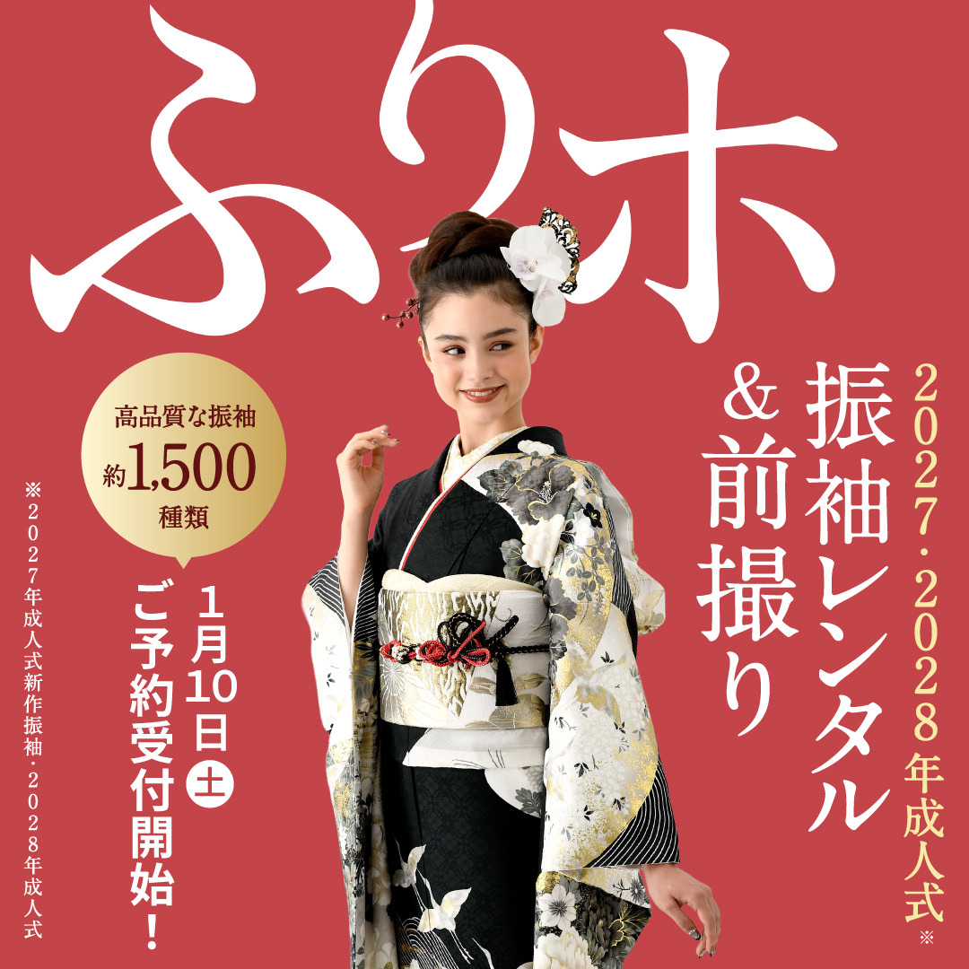 3/27(金)〜3/29(日) 10:00〜17:00 振袖レンタル ご予約&ご相談会 開催します!! 普段はタブレットでお選びいただく振袖を 実際に手に取り、品質等ご確認いただけるチャンスです! お気軽にお越しください♪ ー事前予約制ー 0120-175-753