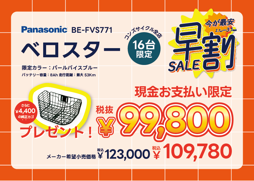 110,000円以上の自転車をお買い上げで——4,000円OFF