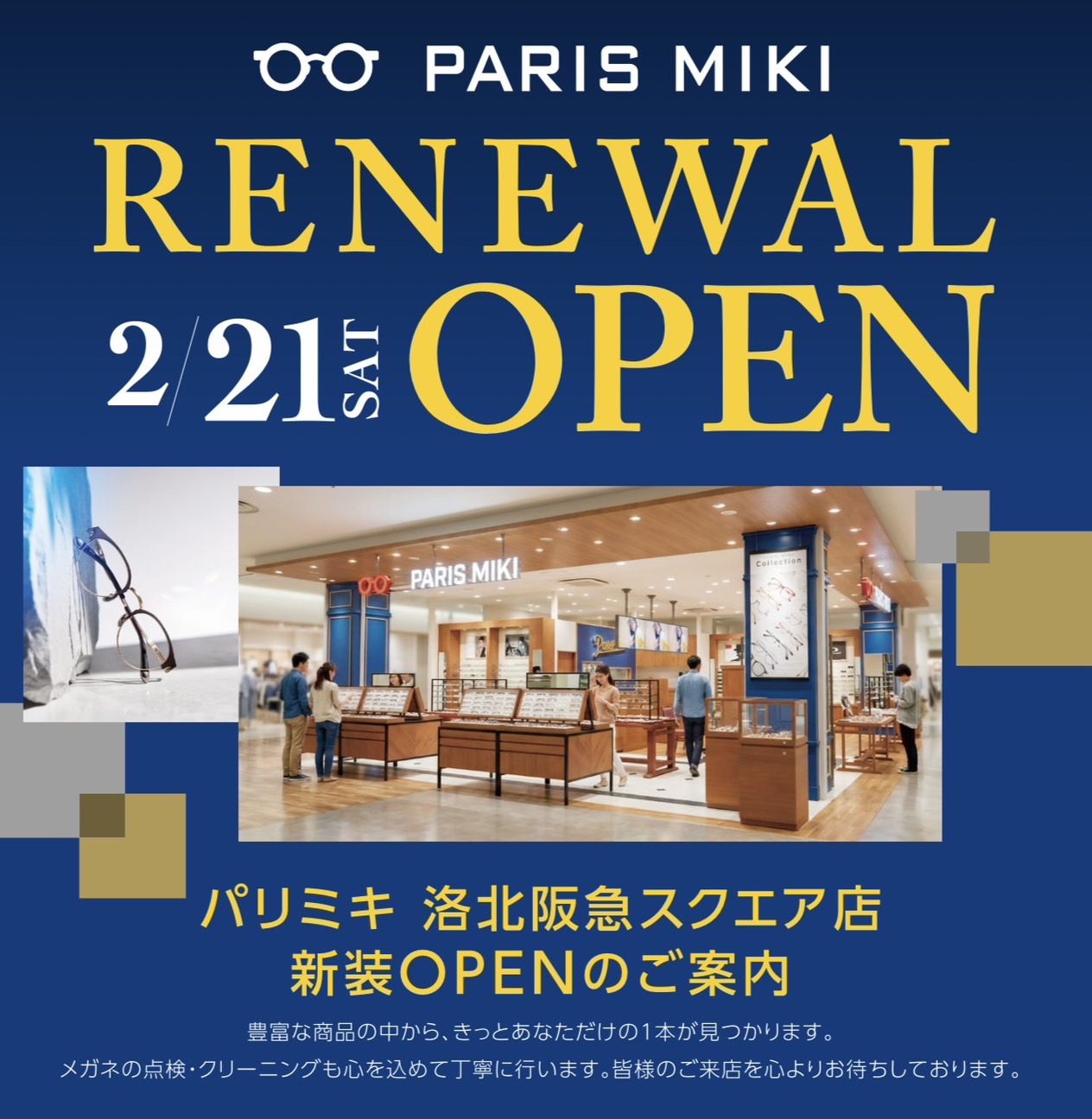 大変お待たせいたしました! この度2月21日(土) パリミキ洛北阪急スクエア店 新しくリニューアルオープンいたしました。 皆さまのご来店を心よりお待ちしております。