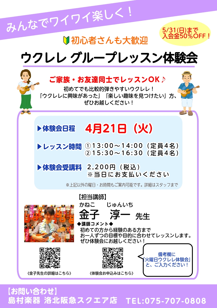 そんな方でも大丈夫! 気軽に楽しんで頂けるウクレレ体験会です。