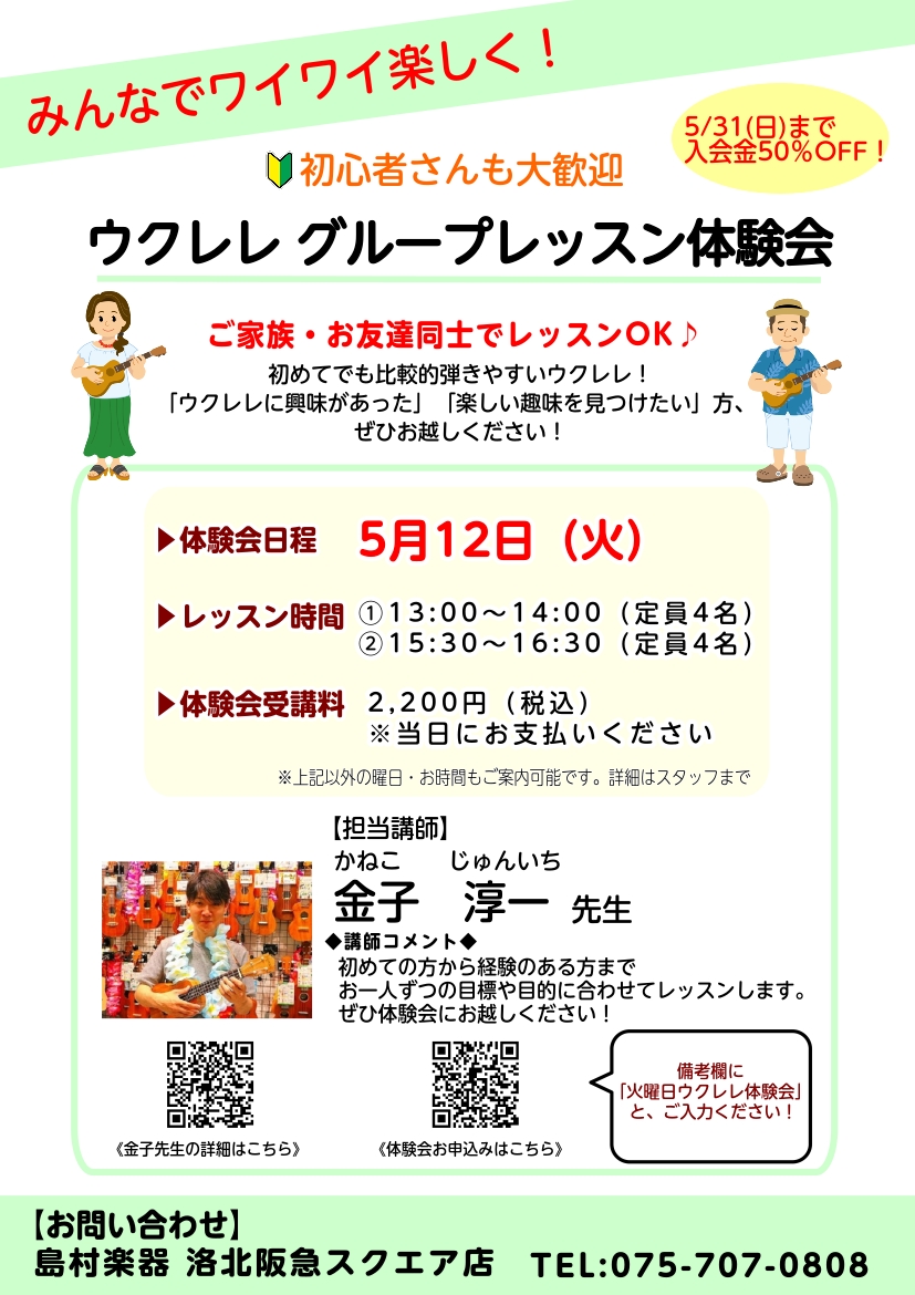 そんな方でも大丈夫! 気軽に楽しんで頂けるウクレレ体験会です。