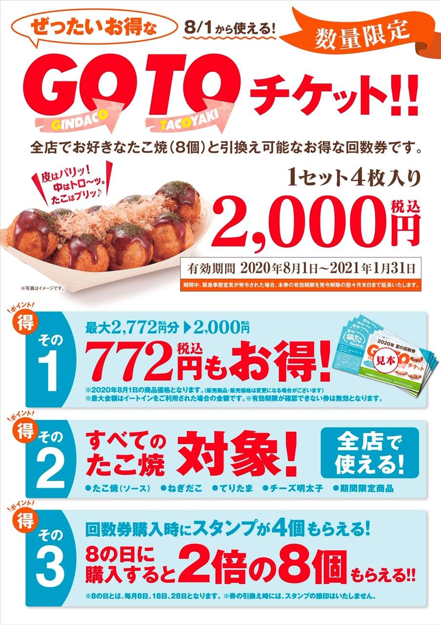 ①GO TO 銀だこ祭り第一弾 2020年8月3日〜7日までの5日間
