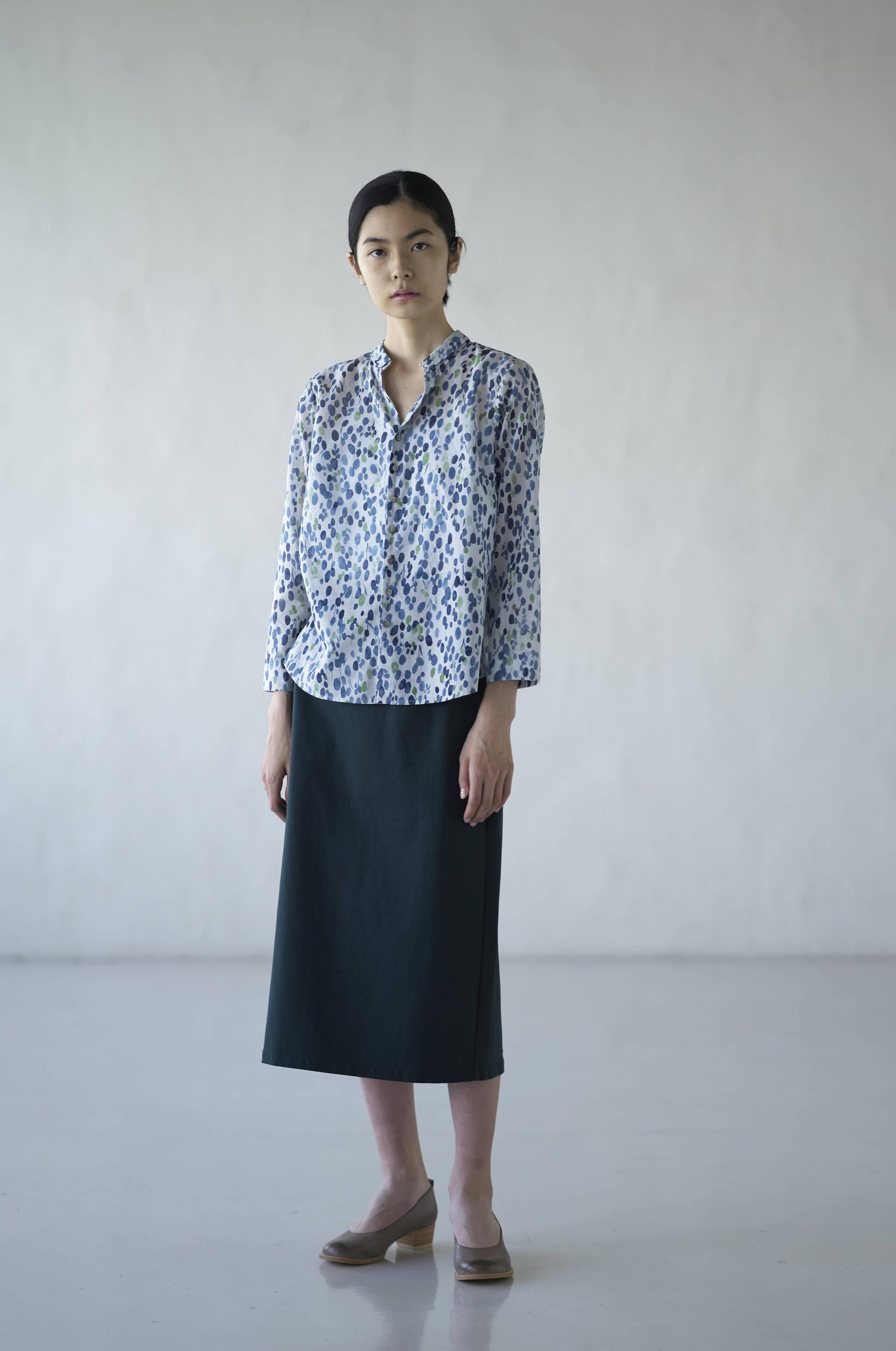 草木をうるおし育てくれる雨の下 喜ぶ草たちをイメージした甘雨柄のシャツ 涼しげな色合いと さらりとした薄手の素材感が 夏のお出かけにぴったりです タイトスカートですっきりと合わせて 甘雨柄シャツ ¥20900 ポンチタイトスカート ¥23100 ゴート革パンプス ¥33000