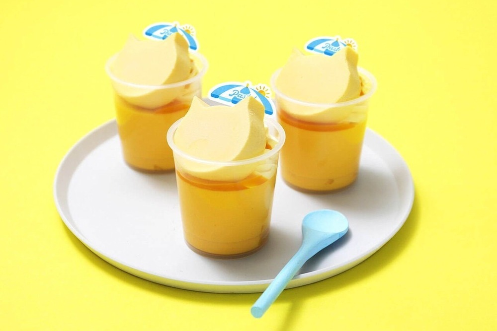 可愛らしいにゃんチーとともに、口の中でなめらかにとろけるマンゴープリンをご賞味ください。