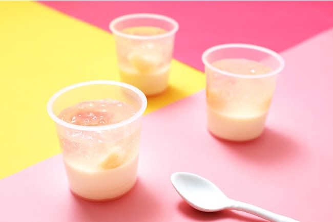 ミルク感あふれるパンナコッタにゼリーと白桃をあしらいました。