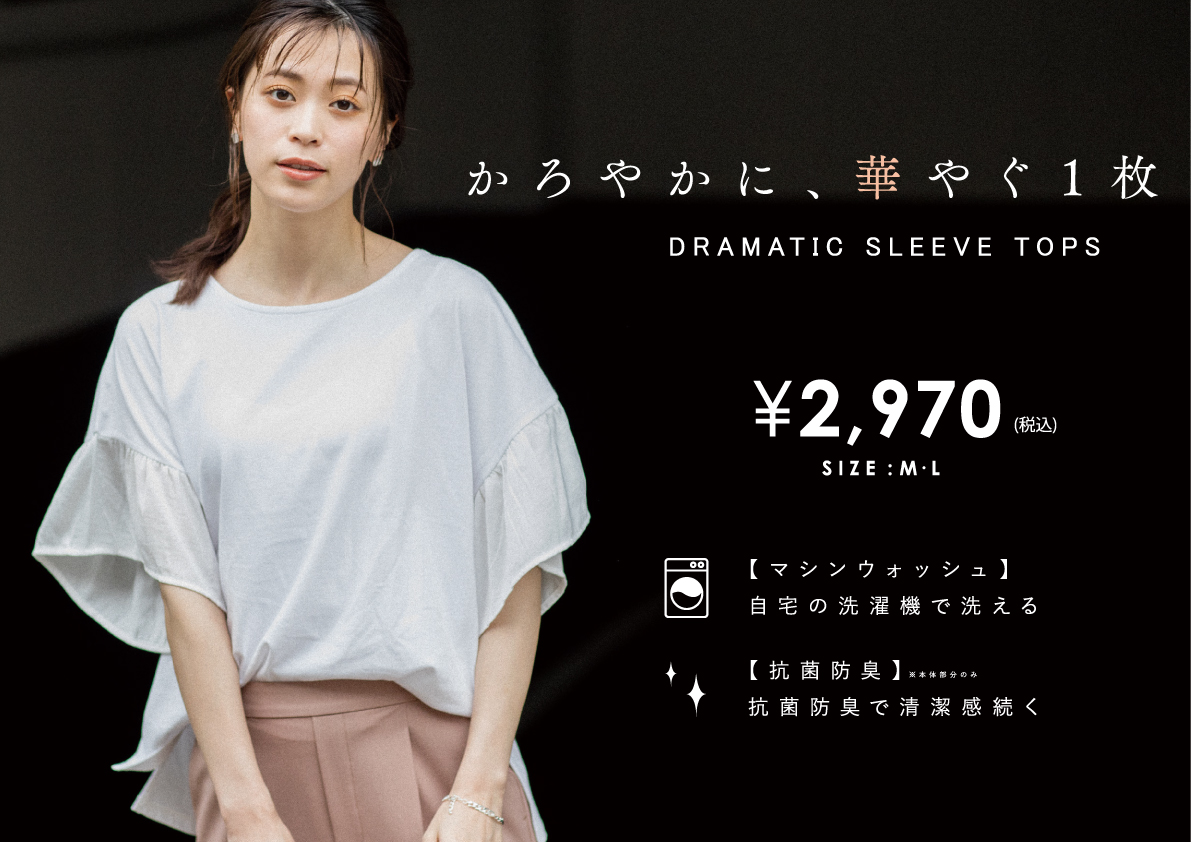 異素材のフリル袖が特徴のデザイントップスです。マシンウォッシャブル対応なのでお手入れもとっても簡単。