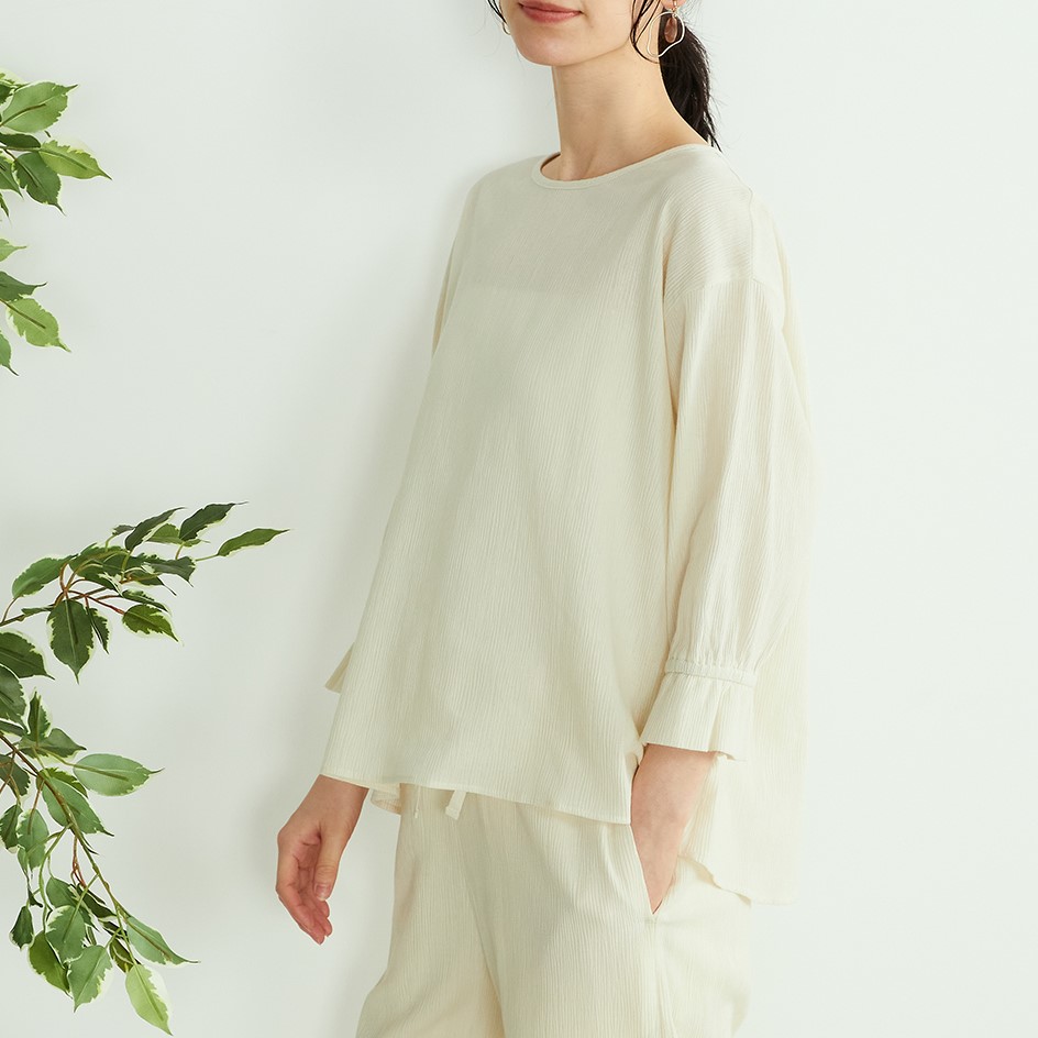 江戸時代から活躍している“高島ちぢみ”を使用したブラウス。