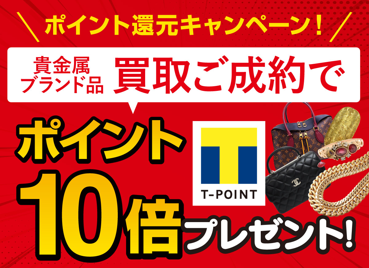買取専門店のジュエルカフェです。 ジュエルカフェでは只今、ショップニュースを見ていただき、貴金属・ブランド品ご成約のお客様に、Tポイント10倍プレゼント実施中。 不要になった貴金属やブランド品があれば、是非ジュエルカフェにお持ちください。 ご来店の際に必ず「ショップニュースを見た」とスタッフに伝えてくださいね。 皆様のご来店、心よりお待ちしております。 詳細はコチラ