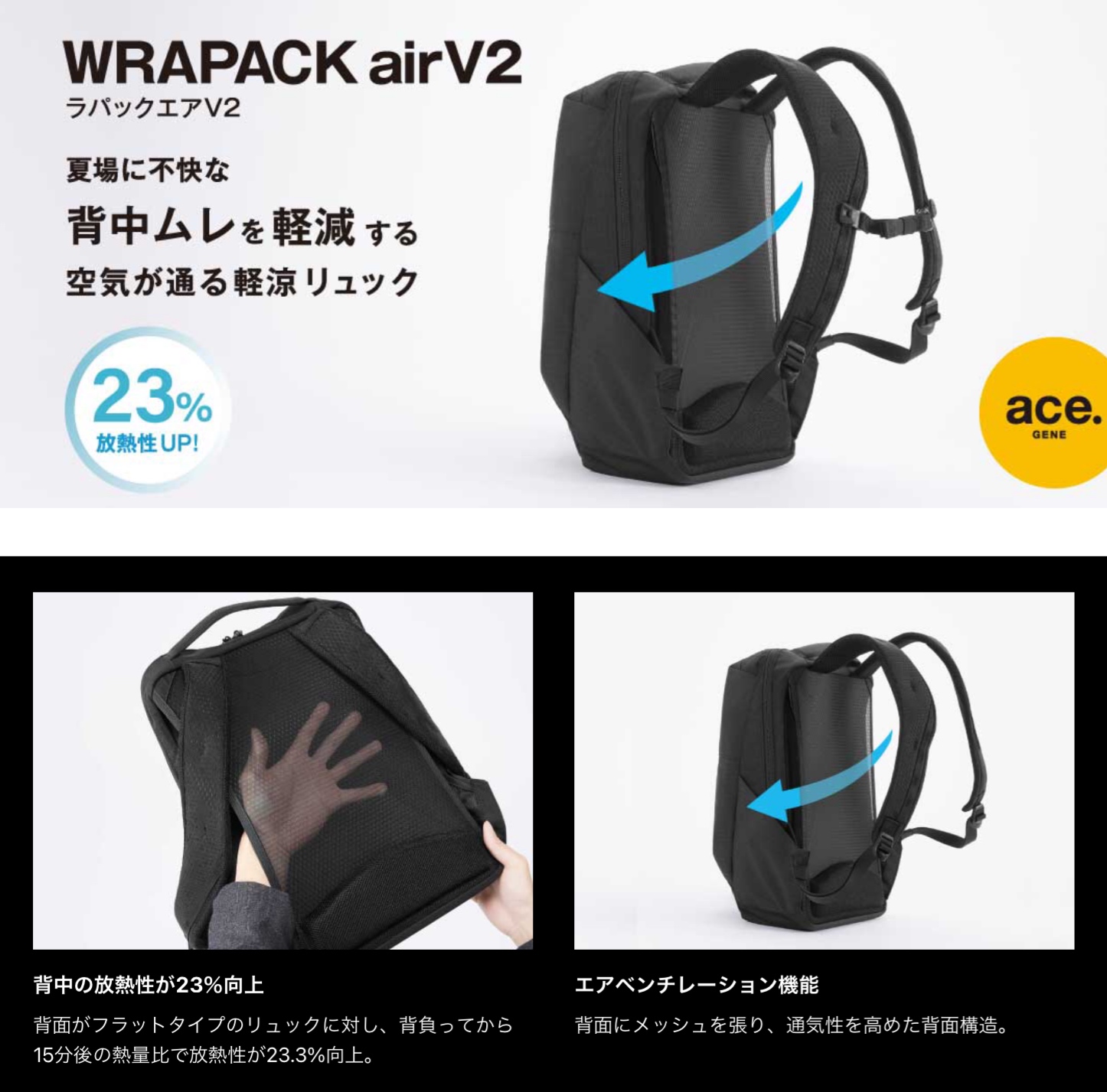 WRAPACK airV2 ✨? ace・ラパックエアV2が入荷しています✨ 放熱性を高め蒸れを防ぐ背面エアベンチレーションで、暑い夏も爽やかに通勤☀️ノートPCの収納も可能です! 是非お立ち寄りください♪ サイズ 小 ¥24200(税込) 大 ¥26400(税込)