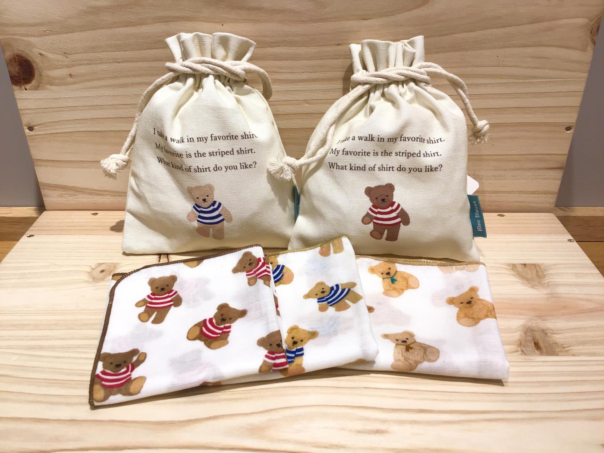 ボーダーTシャツを着たくまがモチーフの夏らしいブルーブルーエオリジナル商品が入荷致しました!