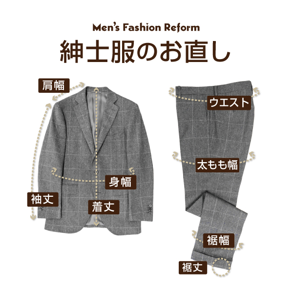 パンツのお直しはもちろん、ジャケットのお直しも私達お直しのプロにお任せください。