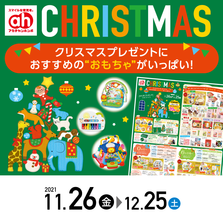 クリスマスプレゼントにおすすめの”おもちゃ”がいっぱい!「みんなでたのしむクリスマス」開催!11/26(金)~12/12(日)の期間中、対象商品購入で”早期特典”としてアカチャンホンポ ポイント20倍プレゼント!