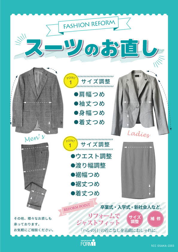新調したり、お手持ちのスーツを見直したりと様々だと思いますが、今年は自分サイズにリフォームして、ジャストフィットで着こなしてみませんか?