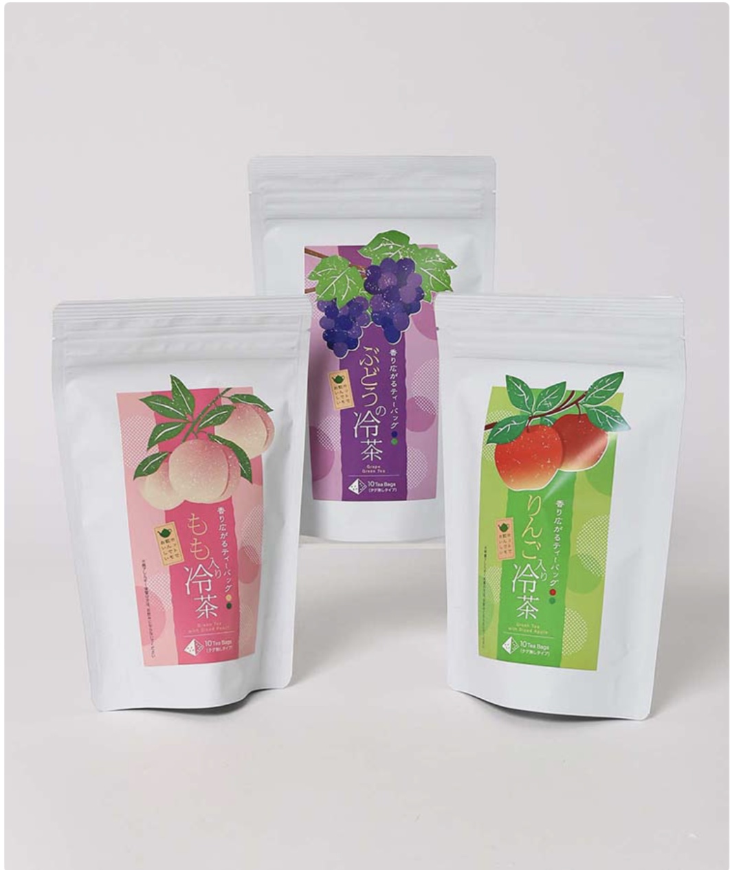香り豊かな3種のフルーツフレーバーの冷茶です♪ パックをボトルなどに入れて冷蔵庫に2時間程冷やすだけでおいしい水出し冷茶の出来上がり‼︎ お湯出しもおいしく召し上がれます。 フルーツ冷茶 648円(税込) ご来店お待ちしております♪
