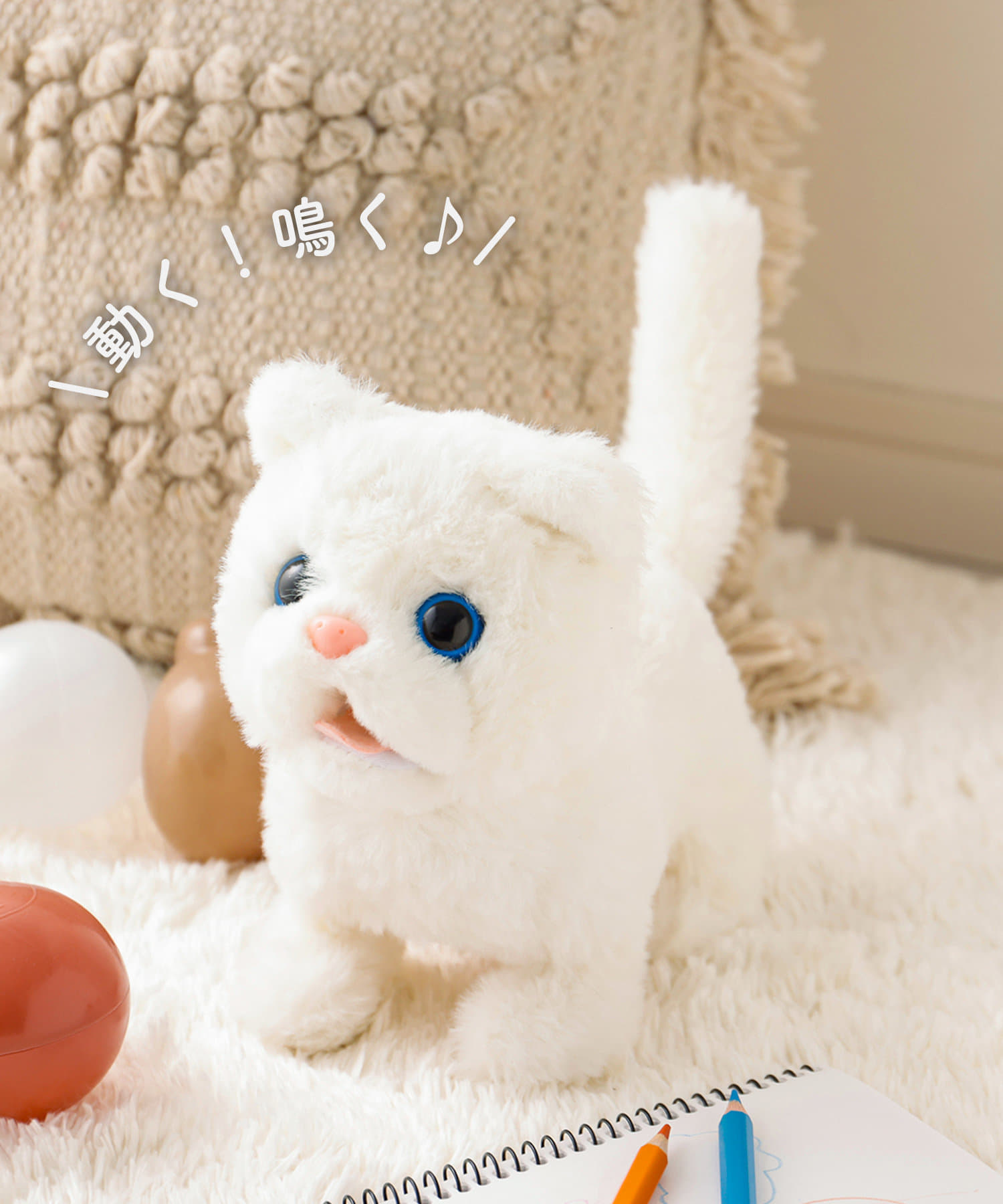 ●スイッチを入れると可愛く鳴きながら歩く犬と猫のぬいぐるみ。