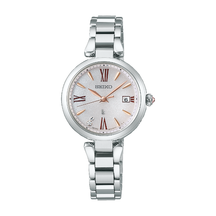 丸型モデルは、芍薬をイメージしたケースフォルムとカーブガラスが特徴で柔らかな雰囲気を醸します。中心に向かってほんのり膨らむ球面形状をした新開発の「ドロップダイヤル」を採用。「しずく」「滴り落ちる」という意味から名付けたこのダイヤルは花びらにのったしずくのような優しい表情です。