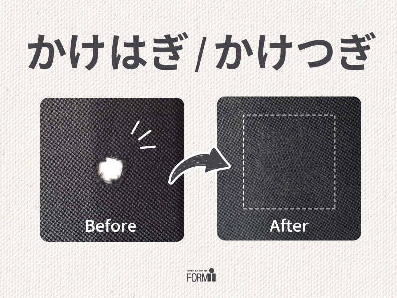 いいものや長く大切に使いたいお洋服、また礼服などには【かけはぎ/かけつぎ修理】がオススメです。