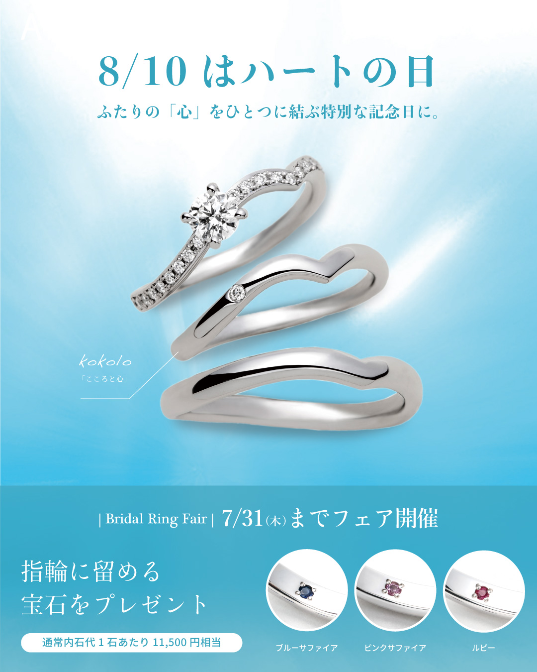 おすすめのハートデザインの婚約指輪・結婚指輪セット「kokolo」は当店でも展示中です!