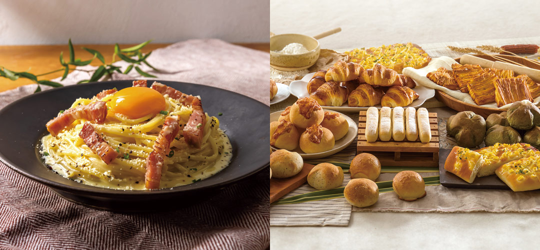 鎌倉風を初めとして40種類以上のパスタと焼き立てパン食べ放題を組み合わせたセットが人気です。